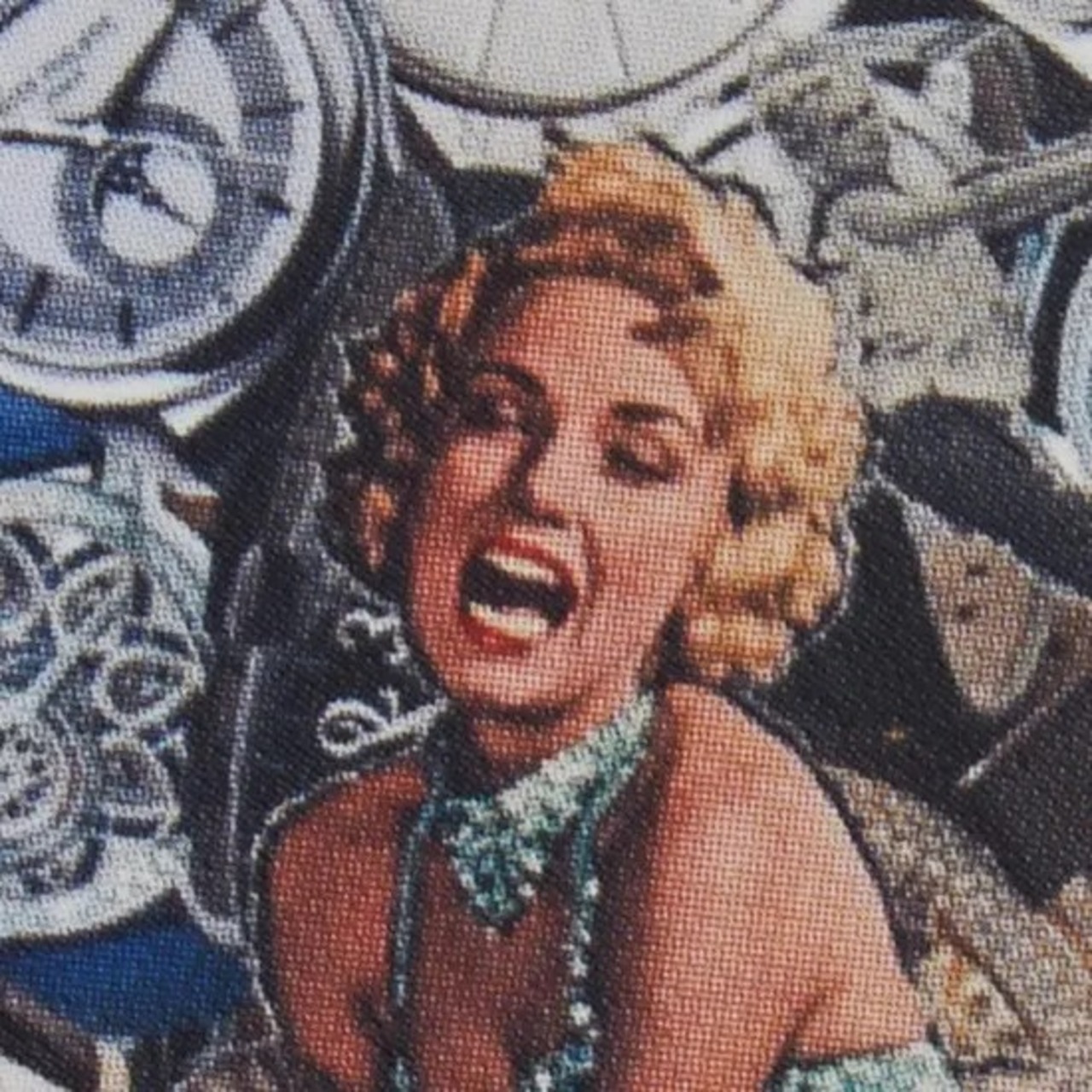注目したいのは、中央に埋没しているはずの女性が、時計の背景の各所に垣間見れる点にあります。完全に埋没、死ぬものは無いのだという横尾氏の主張が感じられる逸品です。